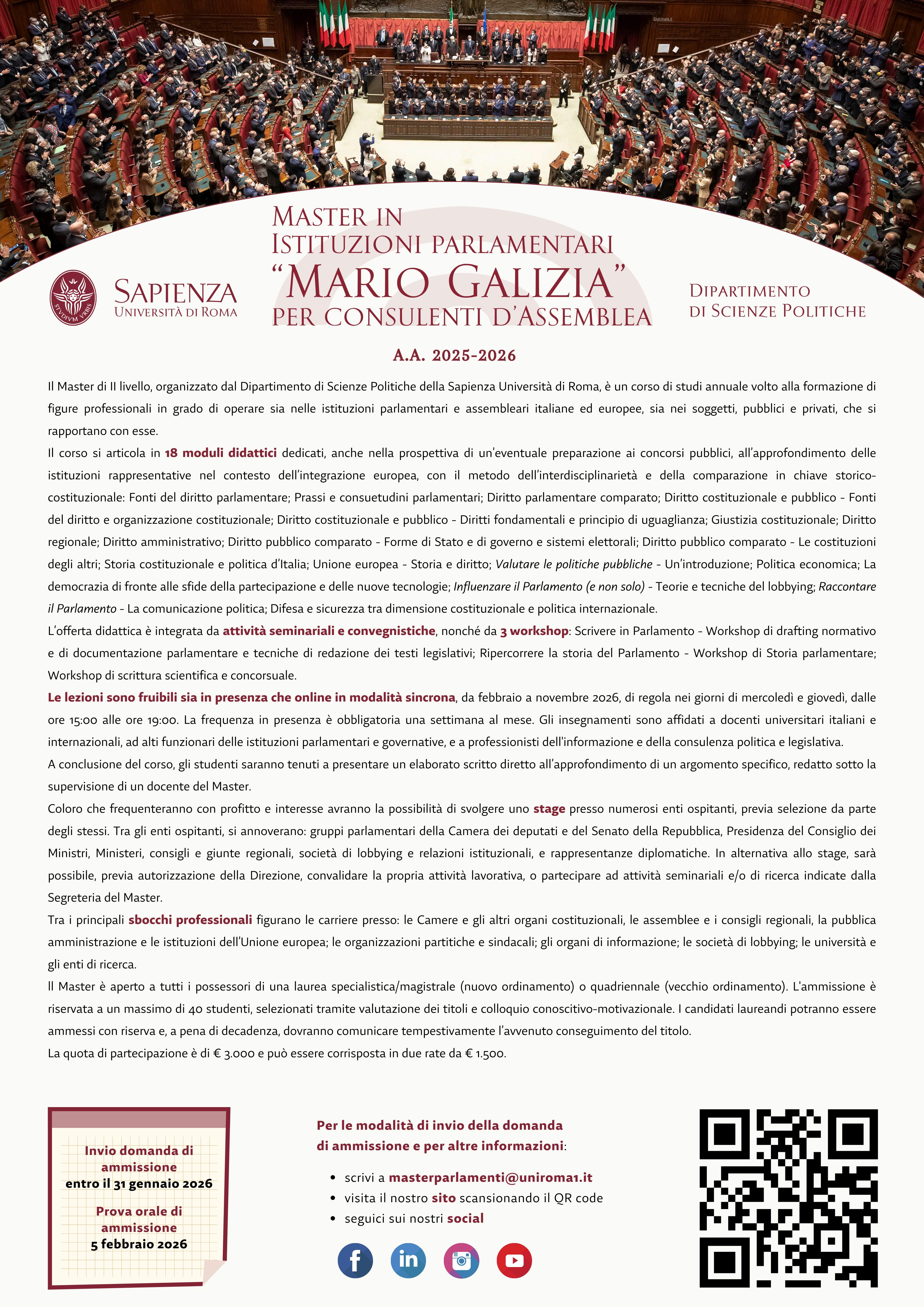 Master in Istituzioni Parlamentari "Mario Galizia" per consulenti d'Assemblea